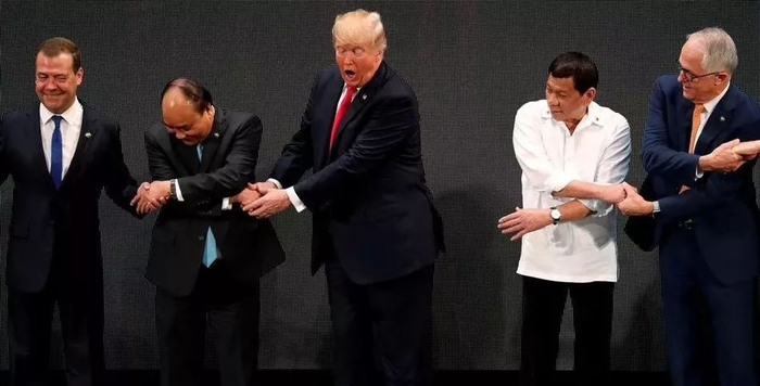 更让人吃惊的是,在和加拿大总理贾斯汀·特鲁多和澳大利亚总理马尔科姆·特恩布尔的自拍中,拿着手机自拍的居然是这两位领导人。