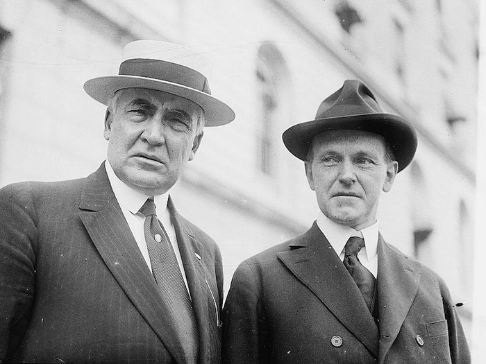 注:左侧为共和党总统哈定,右侧为共和党副总统柯立芝。