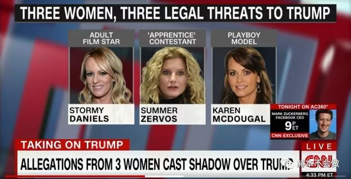 话说,美国总统特朗普正同时被三个女人告上法庭。一个是拍三级片的艳星,一个是真人秀明星,一个是花花公子模特。