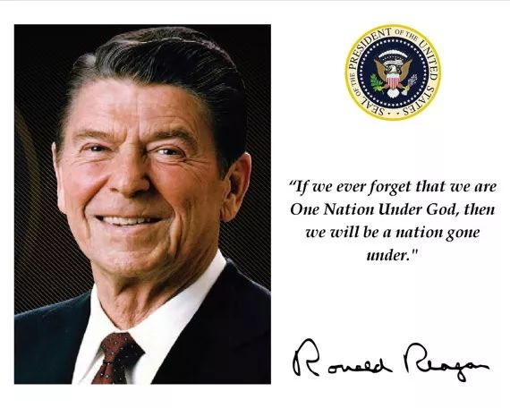 没有上帝,就没有美德,因为没了良心的驱使。没有上帝,我们就会陷入物质而无法自拔,这个扁平的世界只会告诉我们感官体验。没有上帝,社会就会粗鄙化。而且没有上帝,民主政治不会也无法长存。如果有朝一日我们忘了美国是一个上帝庇佑下的国家,我们终将成为一个没落国家。