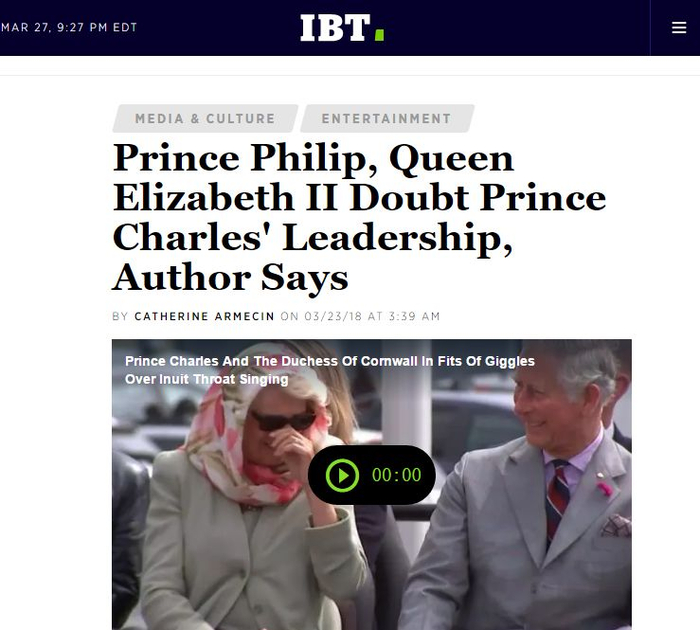 国际财经时报 IBTimes:英国女王夫妇对查尔斯王子的领导能力表示怀疑