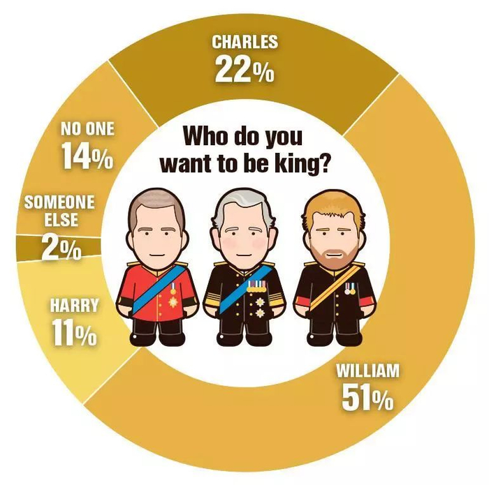 “调查显示,仅有22%的人支持女王的长子查尔斯王子——其中大多数都超过75岁”