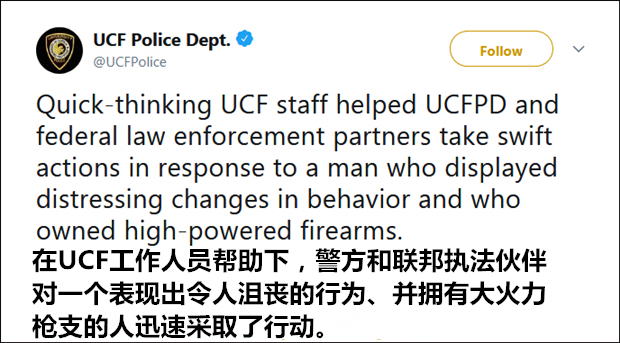 对于孙文亮一案,中佛罗里达大学警方认为,尽管他从未发出过具体的威胁,但对他的拘捕可能挽救了生命。