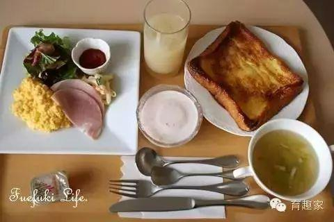 炒蛋配烤火腿/蔬菜色拉/卷心菜清汤/草莓酸奶/法式烤吐司/柚子汁