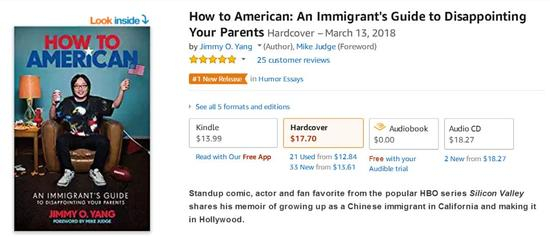 近期,多家美国媒体又同时聚焦在他身上,因为2018年即将成为“疯狂有钱的亚洲人”的他,今年3月份出版了新书——《如何成为美国人,一本教你令父母失望的移民指南》(How to American: An Immigrant’s Guide to Disappointing Your Parents)。