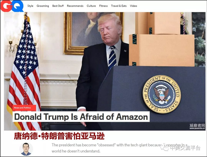 对于特朗普的种种“成见”,GQ说的更加直白一些:特朗普害怕亚马逊,因为亚马逊活在一个他根本搞不懂的世界。
