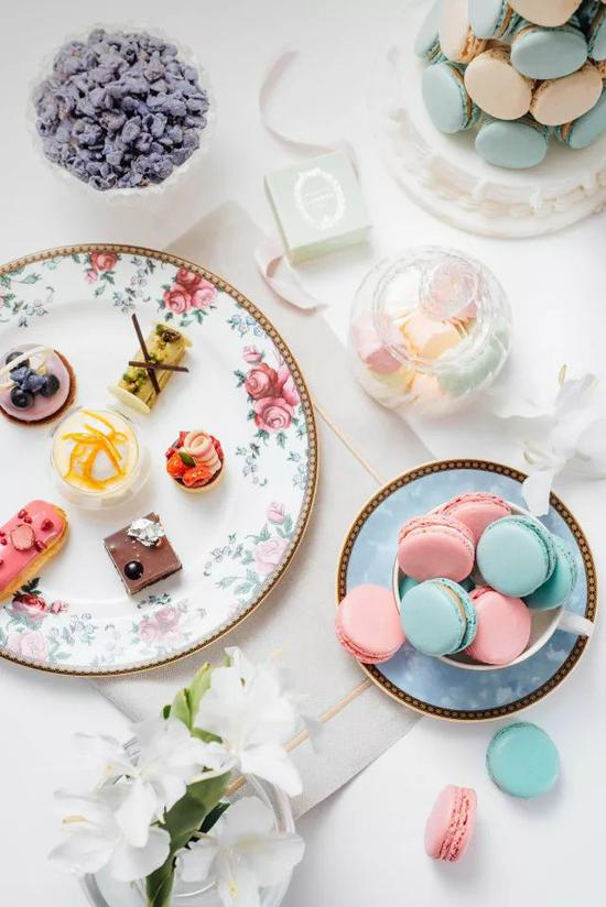 崧蓝绿被用作Ladurée的主要装饰色调,华丽的欧式设计也承袭了法国沙龙文化的风格。在这里,适合慢慢坐下来,点一份甜点与茶。略带甜腻的马卡龙,与爽口的花茶更配。这里有很多可供选择的马卡龙口味与各式茶品。