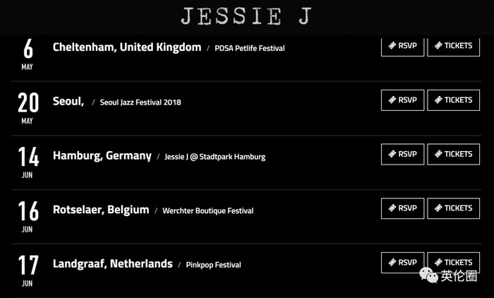 比如今年5月起Jessie J就要开始全球巡演,小伙伴们可以在她的官网上注册会员,还有机会拿到会员专属福利哦。