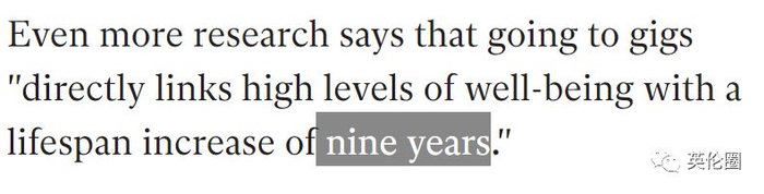《独立报》等多家媒体报道,据英国金史密斯大学表明,两周看1次演唱会可延长寿命,能多活9年。
