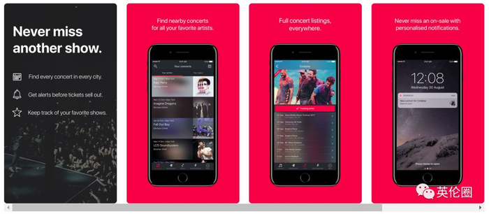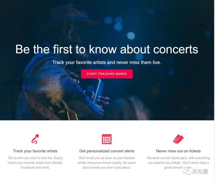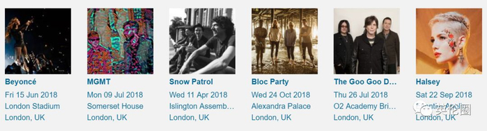Songkick是一个演出发现网站(也有App),汇集各种演唱会售票商、售票网站、剧院的演唱会信息,并通过扫描用户的本地或云端乐库找出用户可能感兴趣的、附近的音乐演出,让用户很容易得知自己喜欢的明星在何时何地有现场表演。