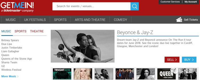 网址:www.ticketmaster.co.uk