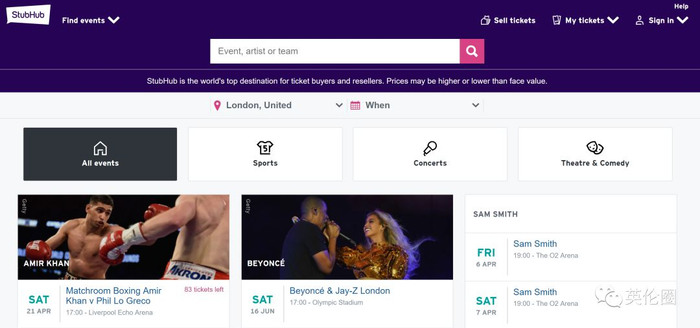 网址:www.stubhub.co.uk