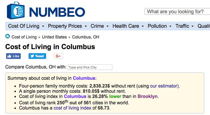 记得去年,Numbeo曾公布过2016年全球最宜居城市排行榜,俄亥俄州首府哥伦布位列全美第2,北美第3。