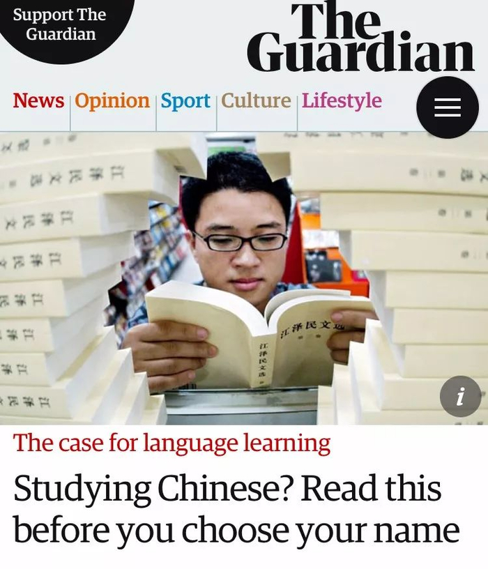 针对各路外国友人的起名乱象,英国《卫报》(The Guardian) 之前还贴心地整理了一篇文章,手把手教大家如何起好中文名。