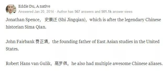 一位网友就列出了几位外国汉学大家的中文名,满满的文化底蕴。