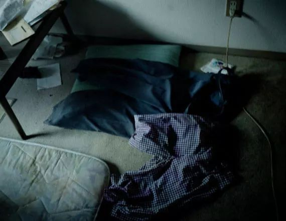 “大多是一些身体哪里出了问题的人。最多的部位就是腿跟脚。前一阵刚处理的一间房,里面的独居男子就好像是只在阁楼上活动,鼓楼上面都是大量的瓶子。瓶子里面都是尿液,而且有的还有秽物。从阁楼上下来很吃力,去厕所也是痛苦的事。所以就只能在睡觉的附近活动了。他们死的位置大多在床上,褥子上,但是死在玄关附近的也是大有人在。我觉得是因为想要出门寻求帮助,就那么死在那里了吧。孤独死的人,感觉都很疏离整个社会。丝毫没有跟人有联系的感觉。”