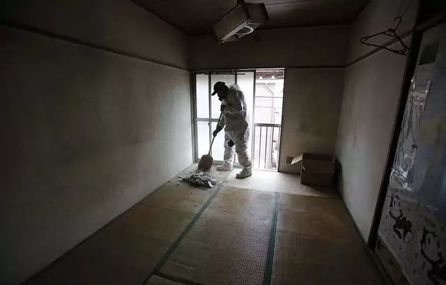 清洁人员仔细的把房中的垃圾用塑料袋装好。几个小时后,房间被打扫的一干二净,甚至连地上的榻榻米、墙上的贴画都被清除。
