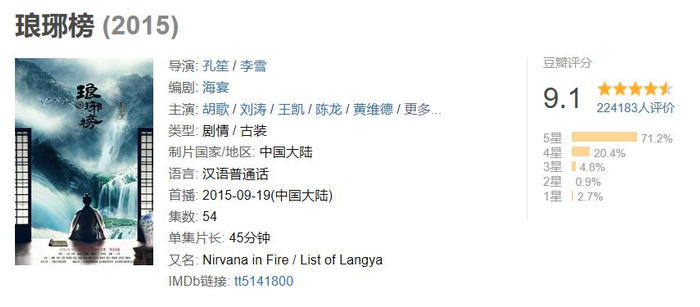 而且,这个系列在豆瓣上的评分可是高达9.8分,要知道胡歌的《琅琊榜》那么好的电视剧评分也才只有9.1分~