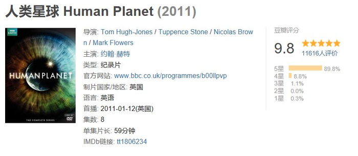 造假的这个系列是BBC记录片中非常有人气的《人类星球》(Human Planet)。这个纪录片共有 8 集,分别从极地、山区、海洋、丛林、草原、河流、沙漠和城市这几个角度,探讨了人与自然的关系,画面是妥妥的精致,内容也是相当的有深度。