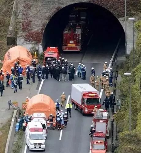 日本山梨县高速公路隧道坍塌事故现场