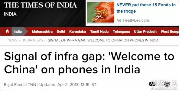 《印度时报》报道截图