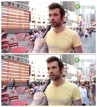 除了微商在时代广场的广告放映照片,还有对“歪果路人”的采访视频,得到的回复都有着惊人相似的套路: