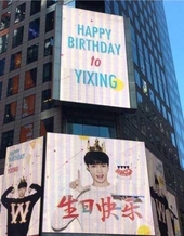 张艺兴的歌迷同样也租用过纽约时代广场的LED广告板——“HAPPY BIRTHDAY to YIXING”,并同时宣传他的solo曲。