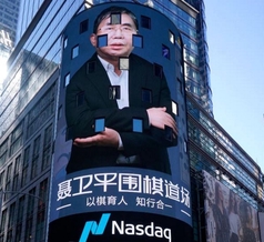2018年3月20日,以棋圣聂卫平为背景的聂卫平围棋道场纳斯达克大屏亮相时代广场