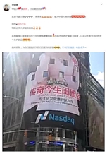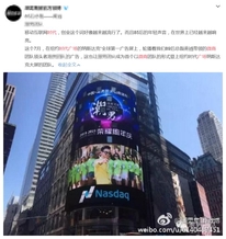 2018年3月20日,以棋圣聂卫平为背景的聂卫平围棋道场纳斯达克大屏亮相时代广场