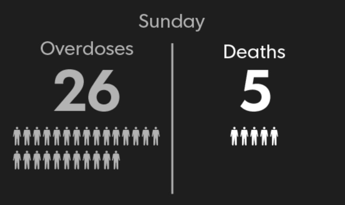 周日 26人摄入过量毒品,5人死亡