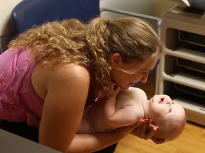 “她手里握着东西,然后还会从椅子上扔下来玩。她看着掉在地上的东西,然后看着我笑了。”Elliana的母亲Gaffney对医生说。