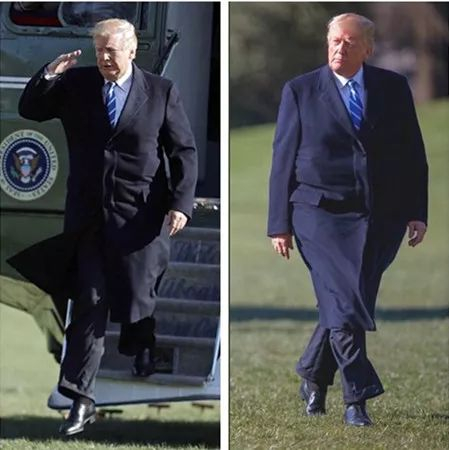 特朗普的西服似乎总要大上一码,显得很不合身,这也让很多大牌的衣服穿到他的身上就沦为了“地摊货”,网友甚至呼吁特朗普总统要“定制”服装。