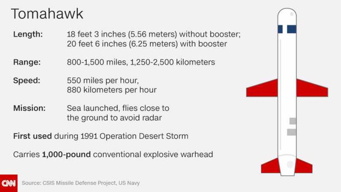 据英国《卫报》消息,美军使用战斧巡航导弹对叙利亚进行打击。