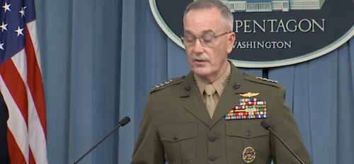 美军参谋长联席会议主席约瑟夫·邓福德表示:“在实施打击前进行的唯一关于这一行动的讨论是保障飞行安全的标准通知。