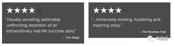 “视觉上引人注目,令人钦佩地毫不畏惧地描绘了一个非凡且真实的成功故事。”——The Stage