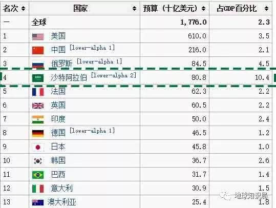 沙特的高昂军费投入