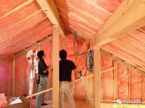 玻璃棉内保温填充于木结构墙体