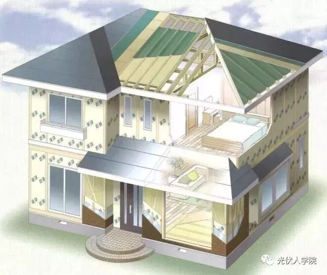独立住宅,在高效保温隔热和高效节能下,所消耗的能源,减去创造的能源,约等于零。