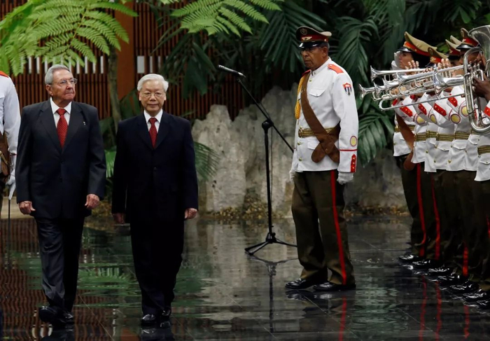 President Raúl Castro of Cuba, left, and Nguyen Phu Trong, the Vietnam Communist Party secretary general, reviewing an honor guard in Havana in March.Reuters