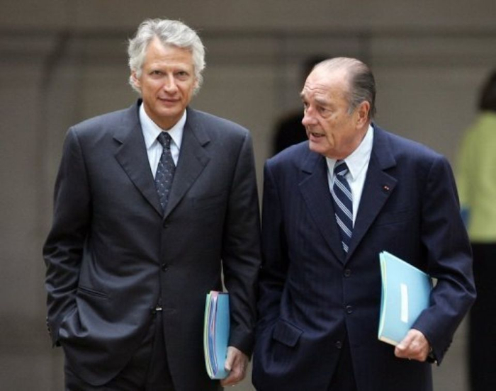 (德维尔潘和希拉克。作为希拉克的外交部长,德维尔潘曾旗帜鲜明的反对美国对伊拉克动武。)