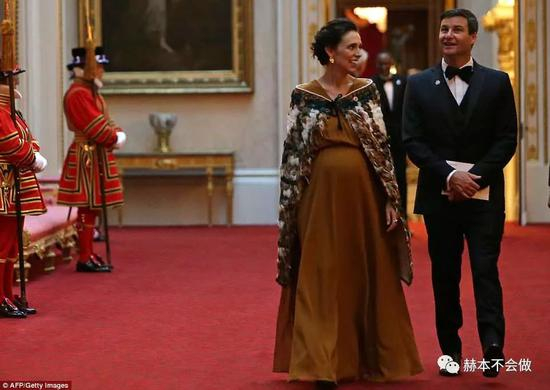 有孕在身的新西兰总理阿德恩,也万里迢迢赶来向女王致敬,并特意穿上了当地的毛利服装。