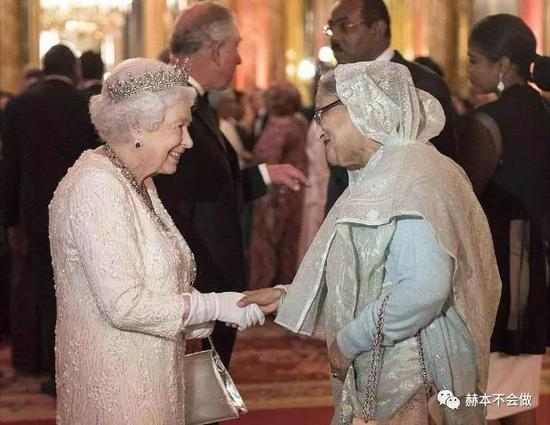 女王作为英联邦元首,和来宾们一一握手。