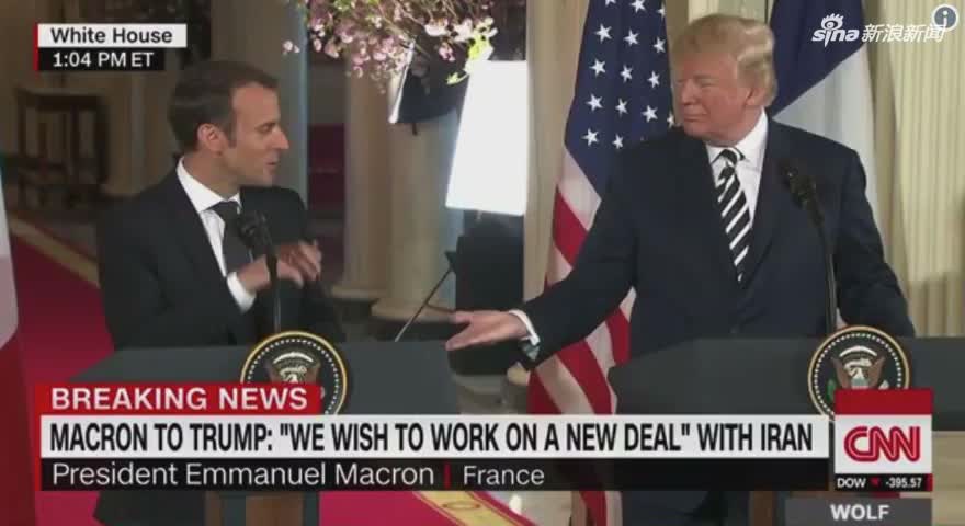 在白宫椭圆形办公室,特朗普对马克龙来访表示欢迎的同时,以愤怒的言辞抨击了伊核协议。“人们知道我对伊朗协议的看法——这是一个糟糕的协议,它当初就不应该签署。”特朗普抱怨道,“这简直是疯了。伊核协议是荒谬的,是一场灾难。”与马克龙会谈后,特朗普再批伊核协议,并警告伊朗不要重启核项目。他说:“在伊核协议问题上,我指责国会,指责很多人。如果伊朗在任何情况下威胁美国,将付出别的国家不曾付出的代价”。