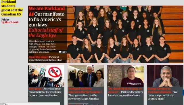 ●卫报北美版直接把编辑权限让给Parkland高中校报编辑,并且刊登了他们真诚的控枪宣言。