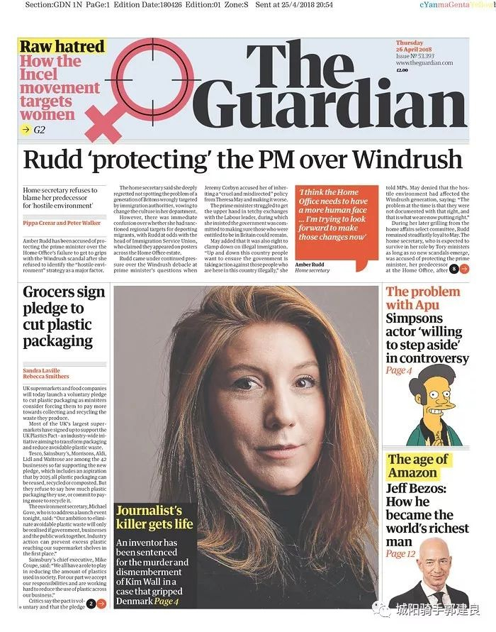 2018年4月26日英国《卫报》头版