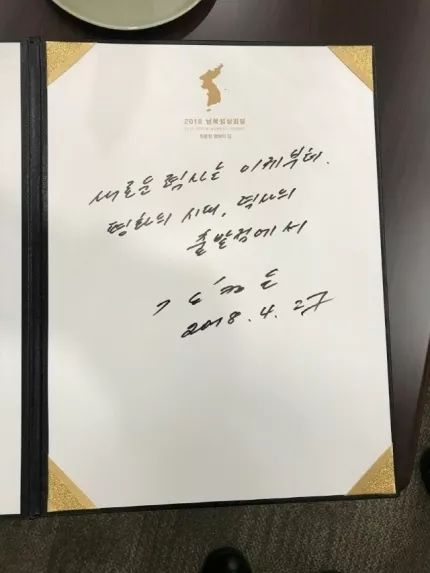 到达峰会举办地“和平之家”,金正恩欣然写下了这样的留言:“新的历史从现在开始,在和平的时代,历史的出发点。”