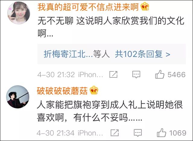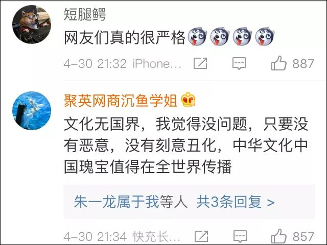 “我是中国人,我没有觉得被冒犯。不就是漂亮的裙子嘛,不懂为什么有人这么敏感。”