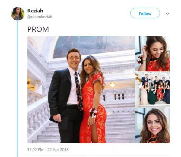 然而,最近,一个美国高中女生,却因为穿了一件旗袍,卷进了一场舆论旋涡,在网上被骂惨了。。。。。。