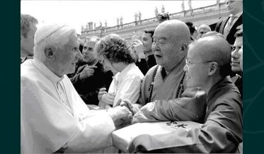 星云大师与教皇本笃交流,妙光在做翻译