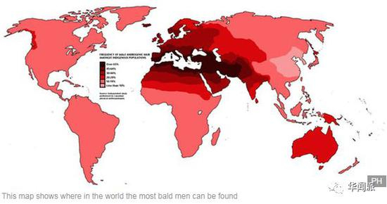 ▲颜色越深的地区,男性秃顶率越高